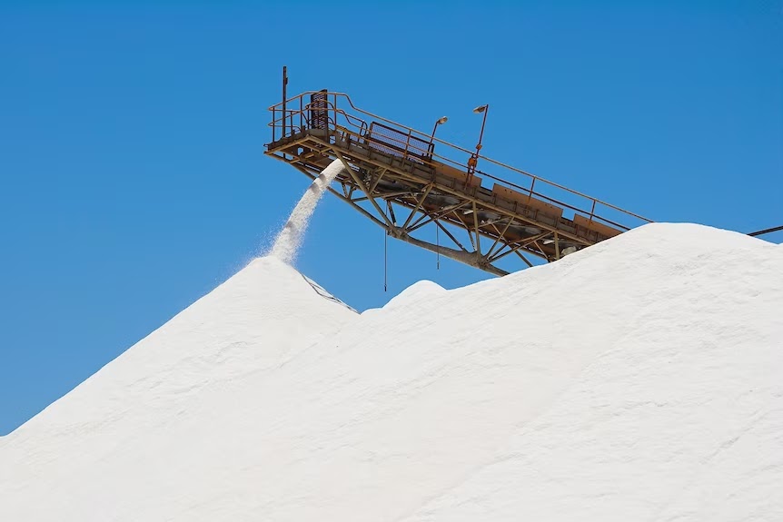 Il sale lavato viene poi scaricato su nastri in rete di acciaio inox prima di essere convogliato al cumulo lavato. Il sale viene scaricato in questo deposito per circa due mesi affinché il contenuto di umidità diminuisca. Il sale secco viene trasportato da autotreni con una capacità massima di 180 tonnellate, per 24 chilometri, fino alle scorte di 400.000 tonnellate a Cape Cuvier per la spedizione.